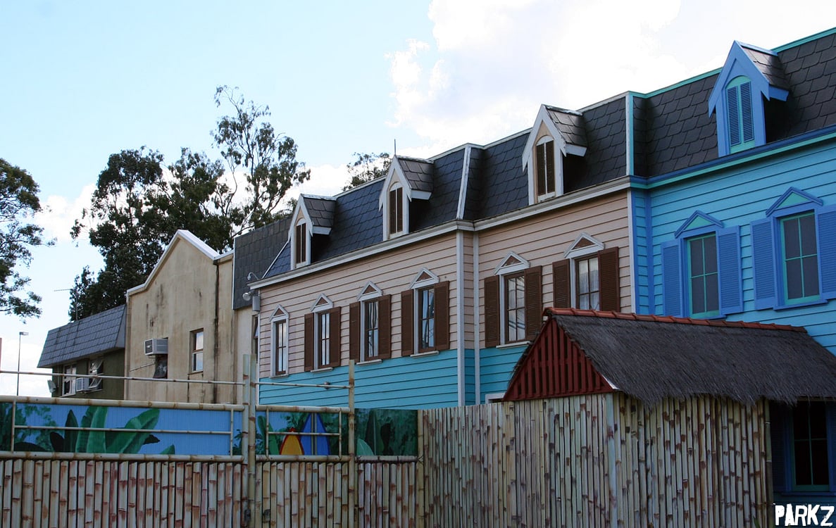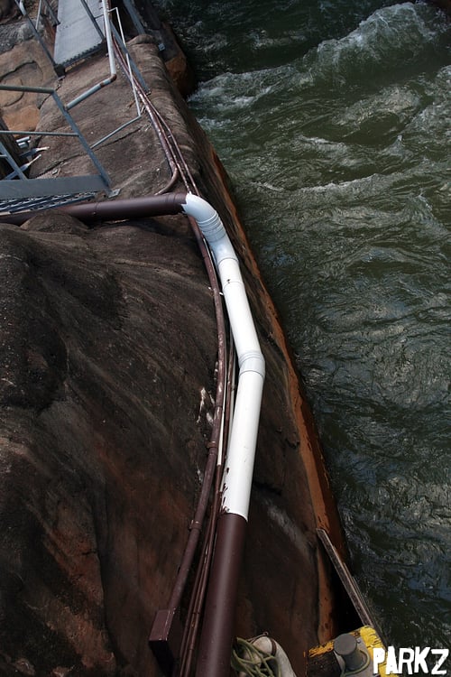 Theme parks utilise sight lines to determine where the theme starts and ends. More often than not, if the guest can't see it, then it won't be themed. Lucky for Dreamworld this wall is hidden deep within the back-of-house area.