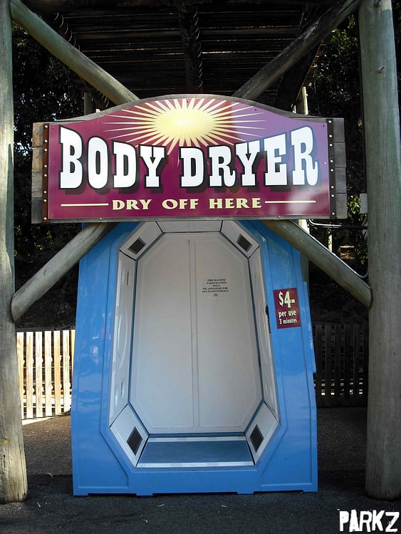 There's a bright blue haystack dryer at the Log Ride exit.