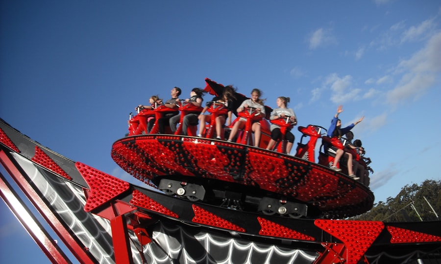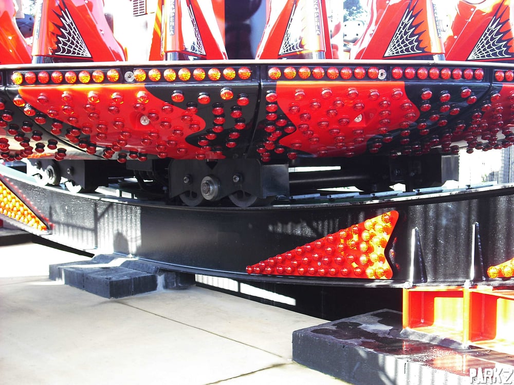 The ride coming to an end. It's a cool little ride, and feels a lot like a mini version of Dreamworlds claw, with some interesting forces due to the speed of rotation.