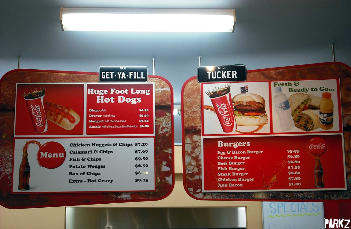 Parkz stopped for a bite to eat in the cafe. Here are the prices.
