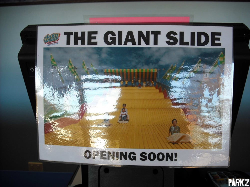 The slide is going at the south west corner of the park, behind the Bizzy Buggies and the Wild Mouse.