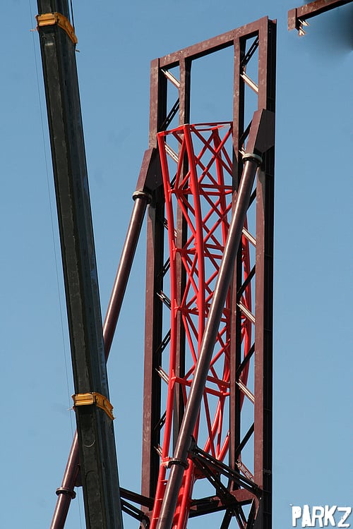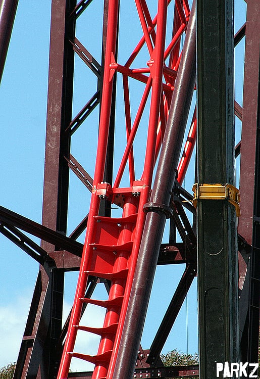 As the track starts to overhang it switches to the box truss style – from here to the top of the main tower the track supports itself.
