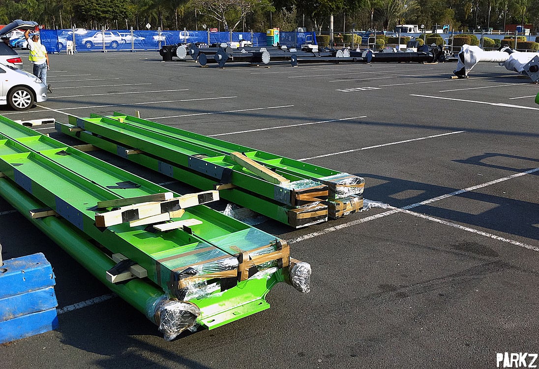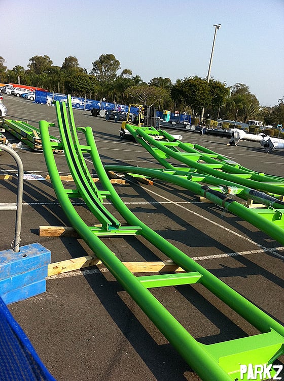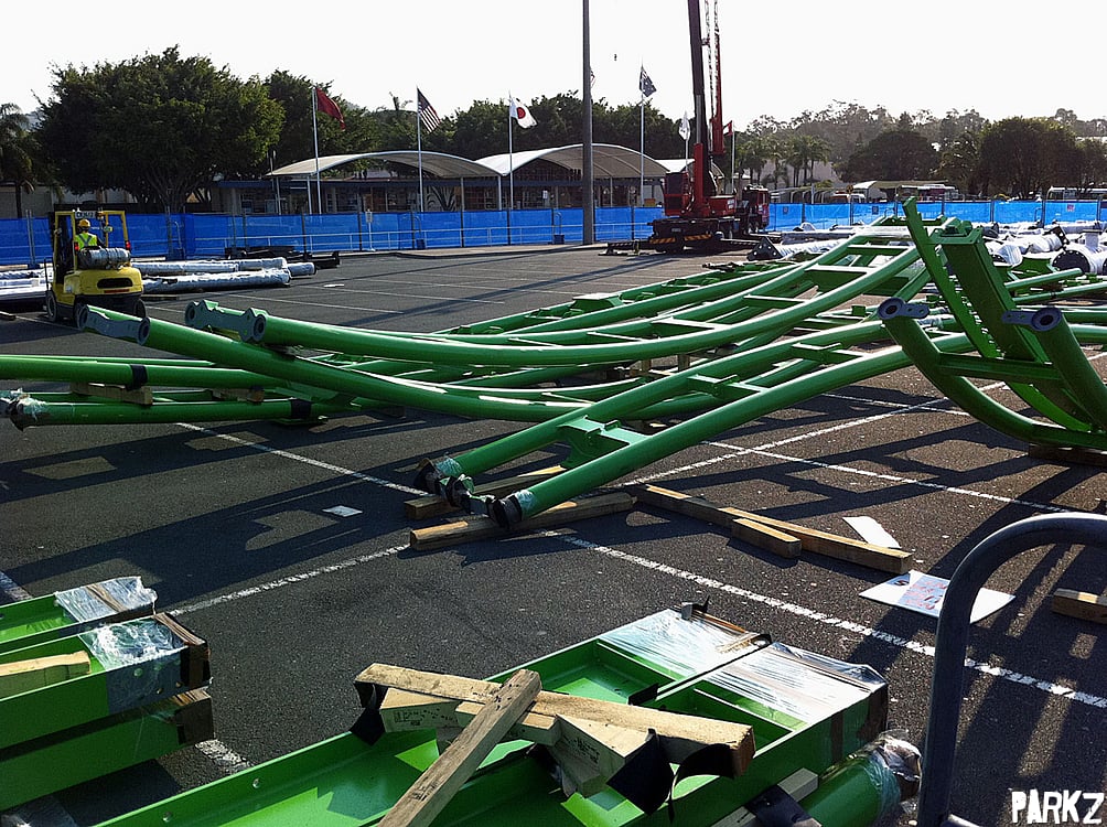 As if to try and take some of the attention from Dreamworld's Buzzsaw opening, Movie World officially announced Green Lantern over the weekend. As track piles up at Movie World ahead of vertical construction, we take a look at Green Lantern's construction.