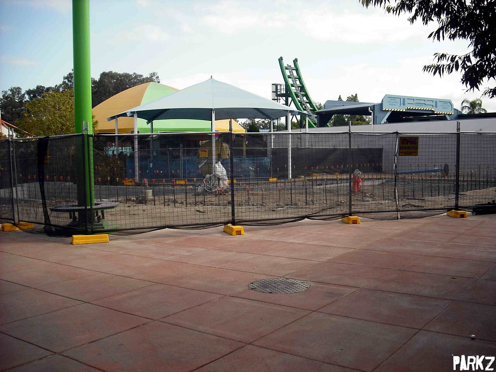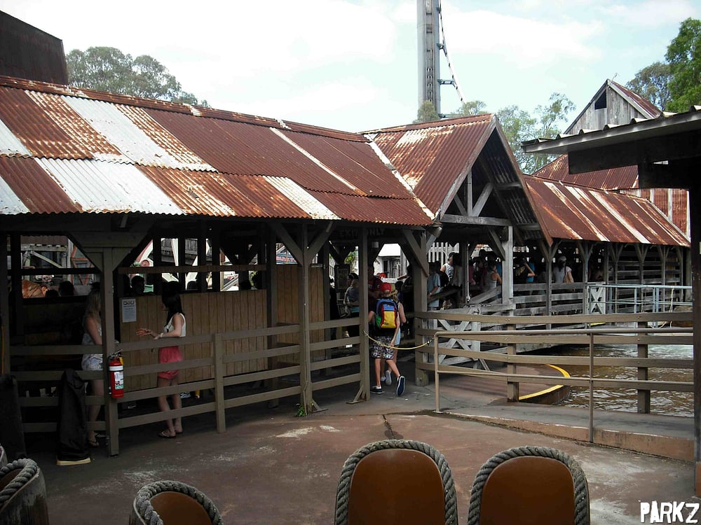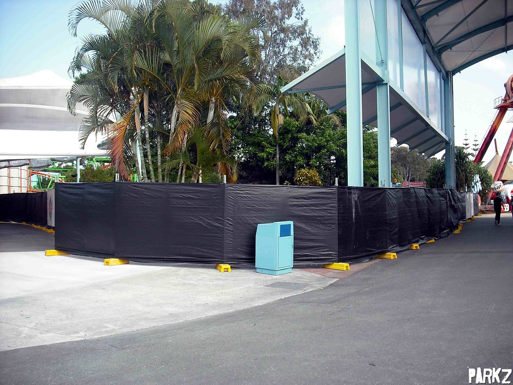 Interestingly, a section of fence has been lowered, allowing views into the Thunder River rapids boarding area.