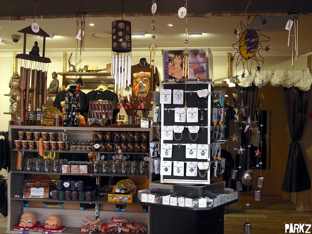 Among your typical ride relate merchandise, like T shirts, onride photos and coffee mugs, you can stock up on Buddha statues, dream-catchers and incense sticks!