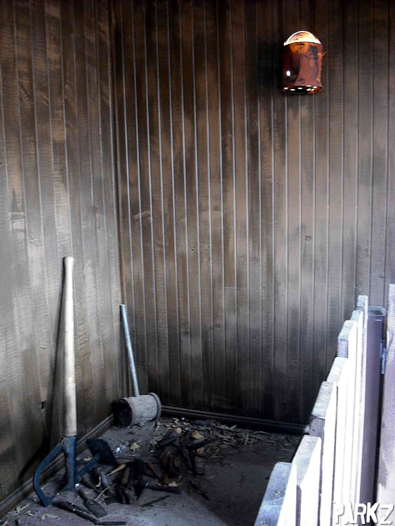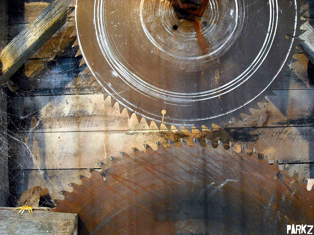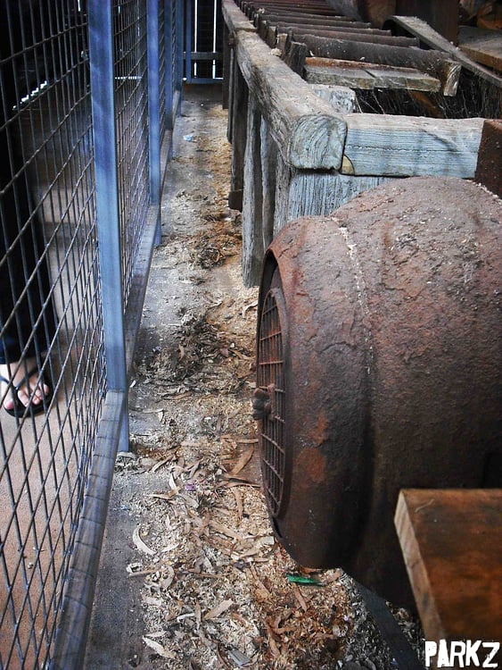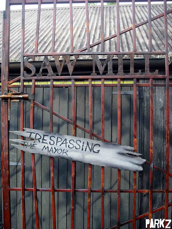 Anyway, bits and pieces of sawmill theming are caged off with these signs upon them.