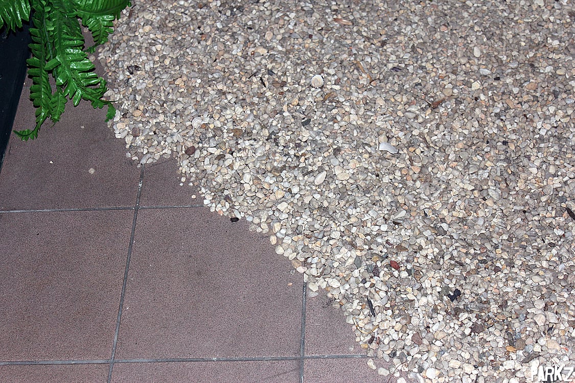 Clever use of gravel has turned the existing room into a prehistoric jungle. Or a suburban driveway?