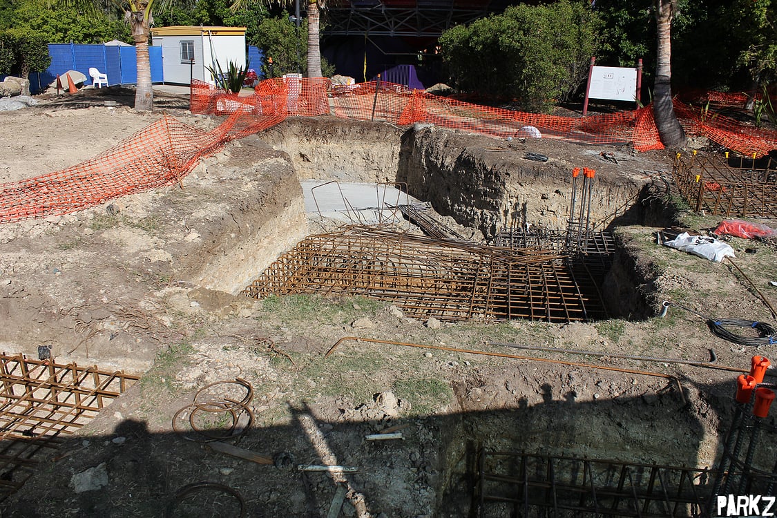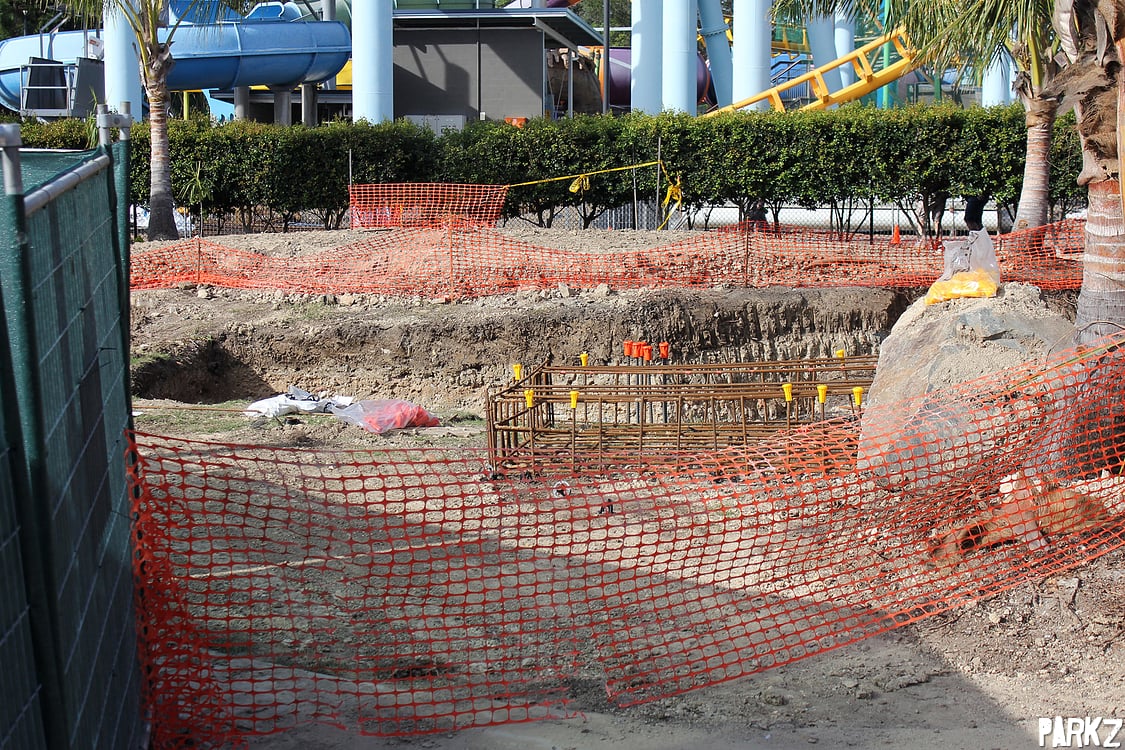 Between the twisted array of slides and coaster track, we see the first signs of construction over at WhiteWater World.