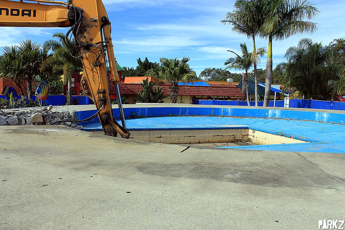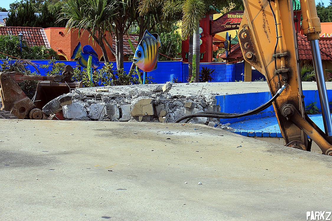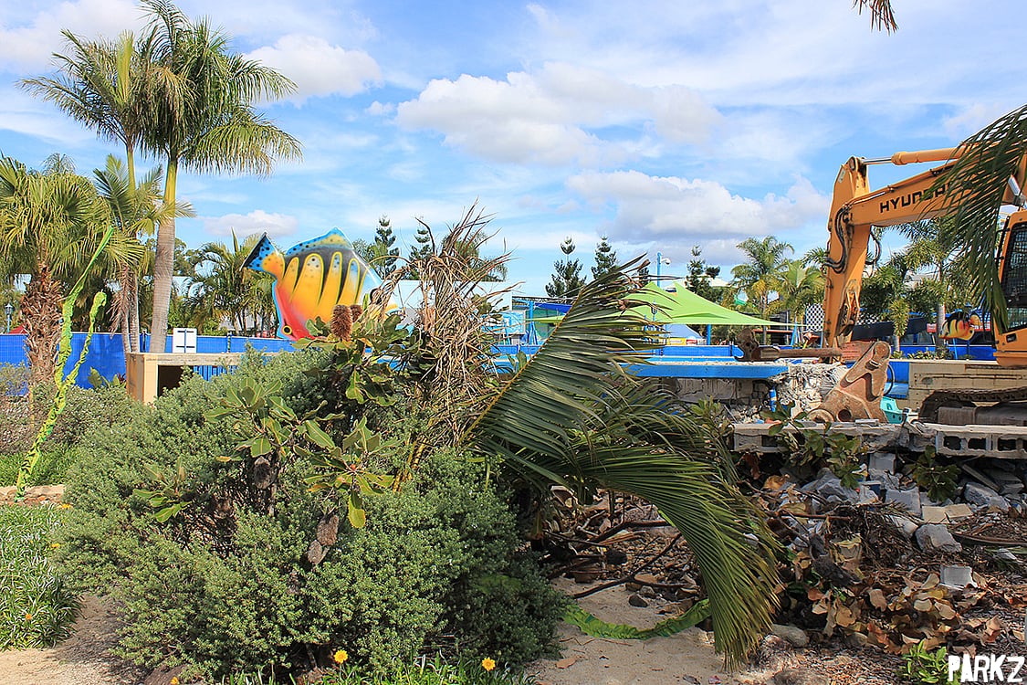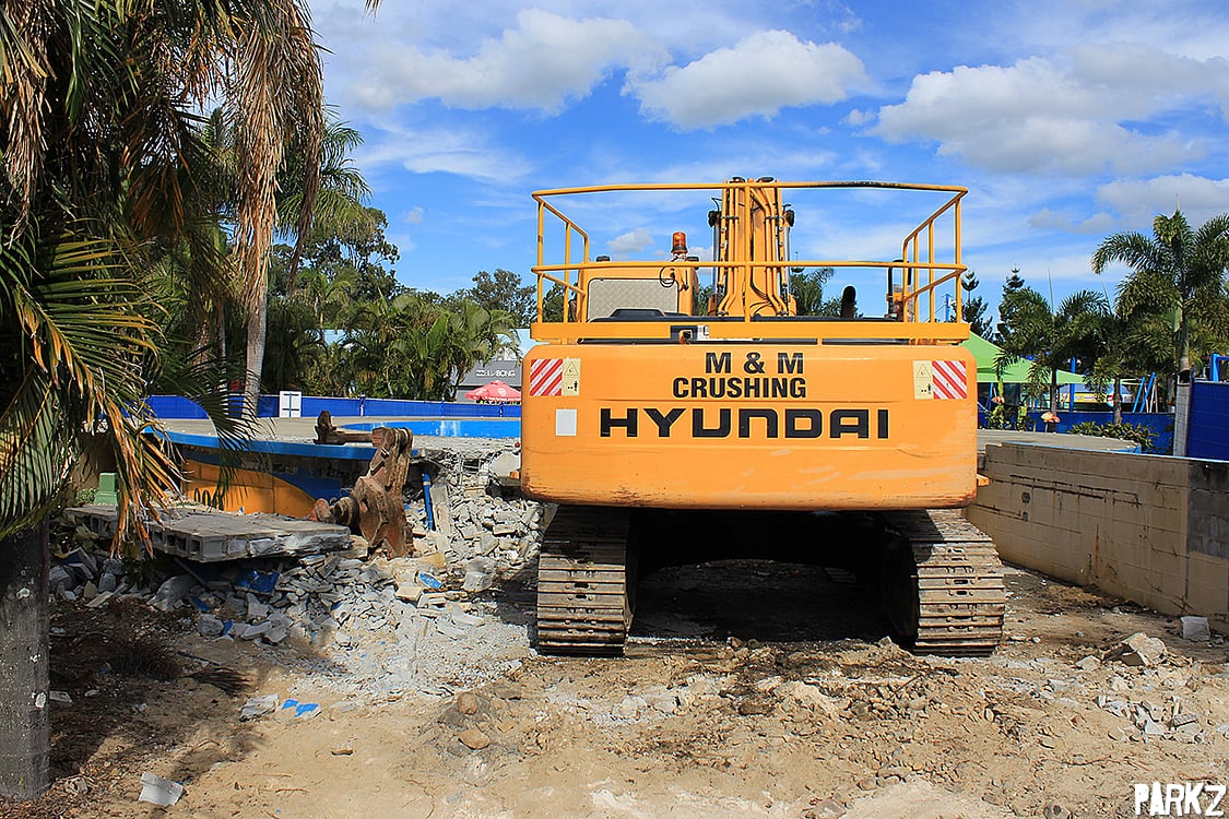 The first part of the process is clearing the remains of Reef Diver and surrounding landscaping.