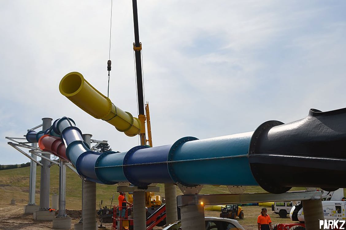 Early November saw the installation of the final hill into the run-out lanes, plus the start of the enclosed tube sections.