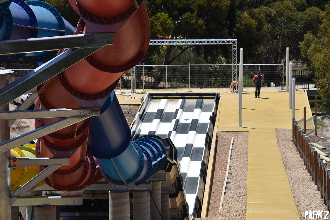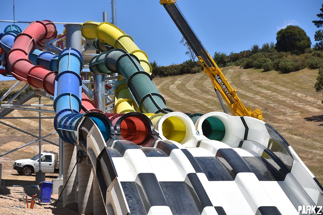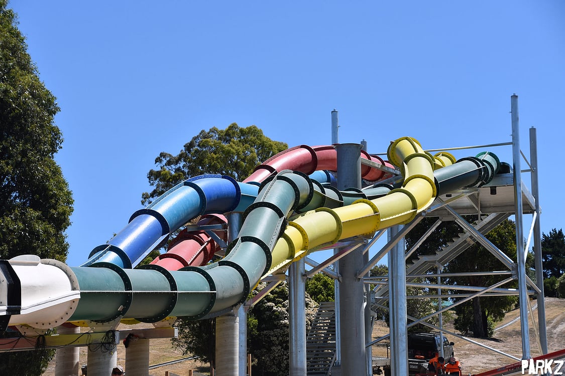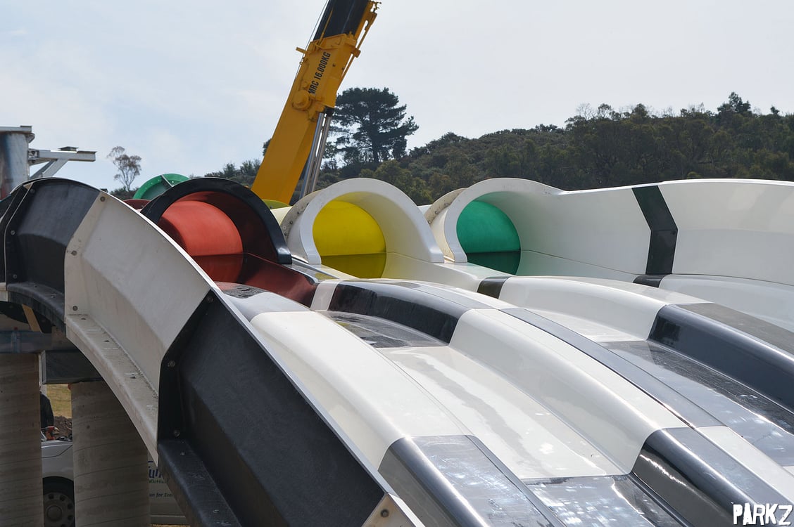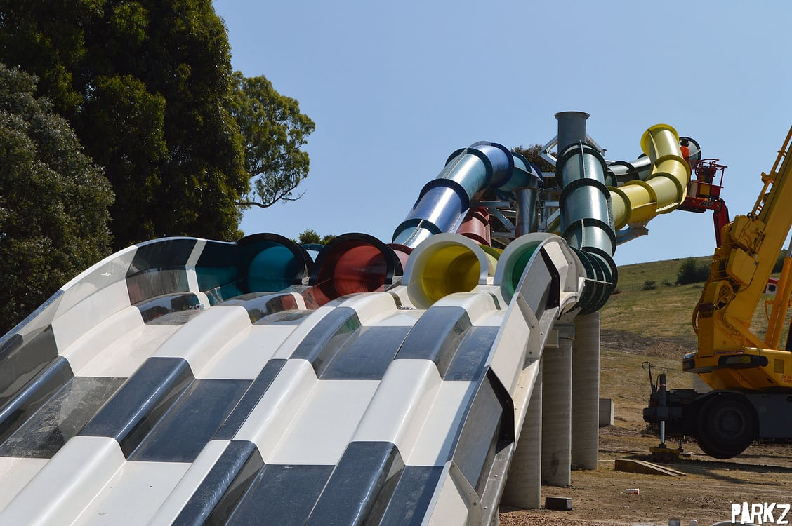 We head south to Victoria's Funfields theme park, where the finishing touches are being put on the Kraken Racer water slide, and also take a look at other improvements and changes around the park for the 2015/16 season.