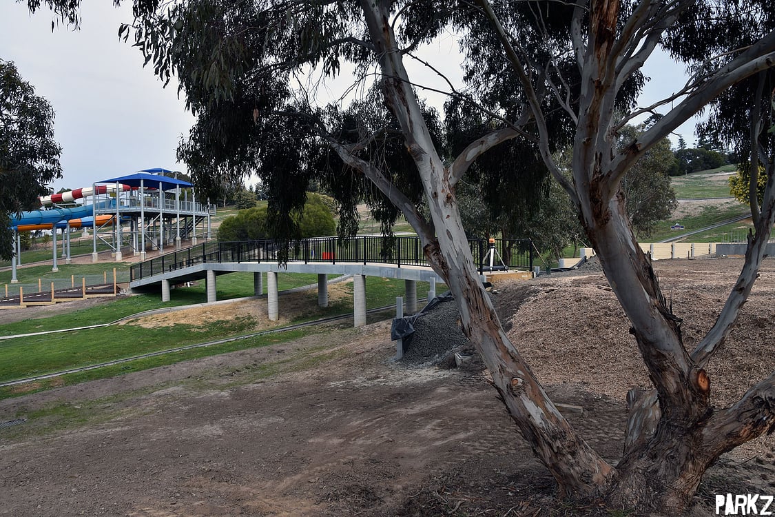 A new bridge has been built to connect the main water slide area of the park to the new Kraken Racer slide.