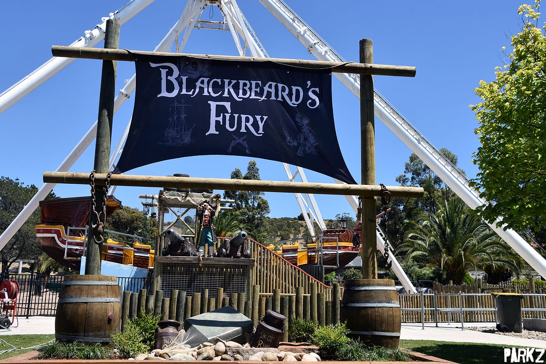 The old Huss pirate ship ride from Seaworld is still going strong. This season Blackbeard's Fury has received a themeing upgrade, a new sign and an updated queue area.