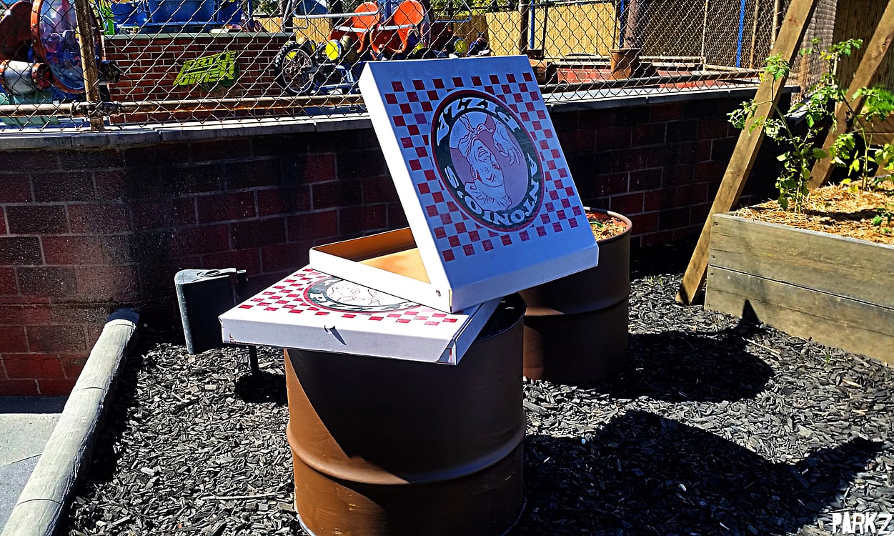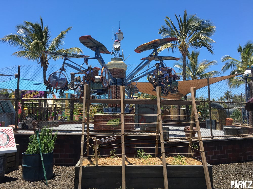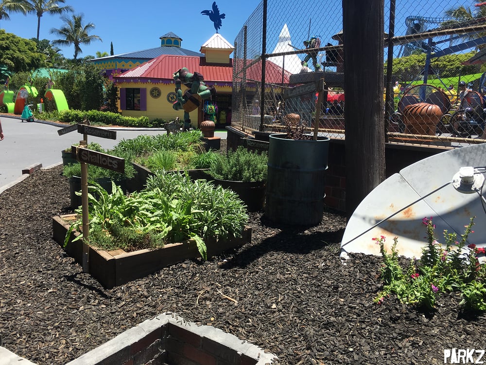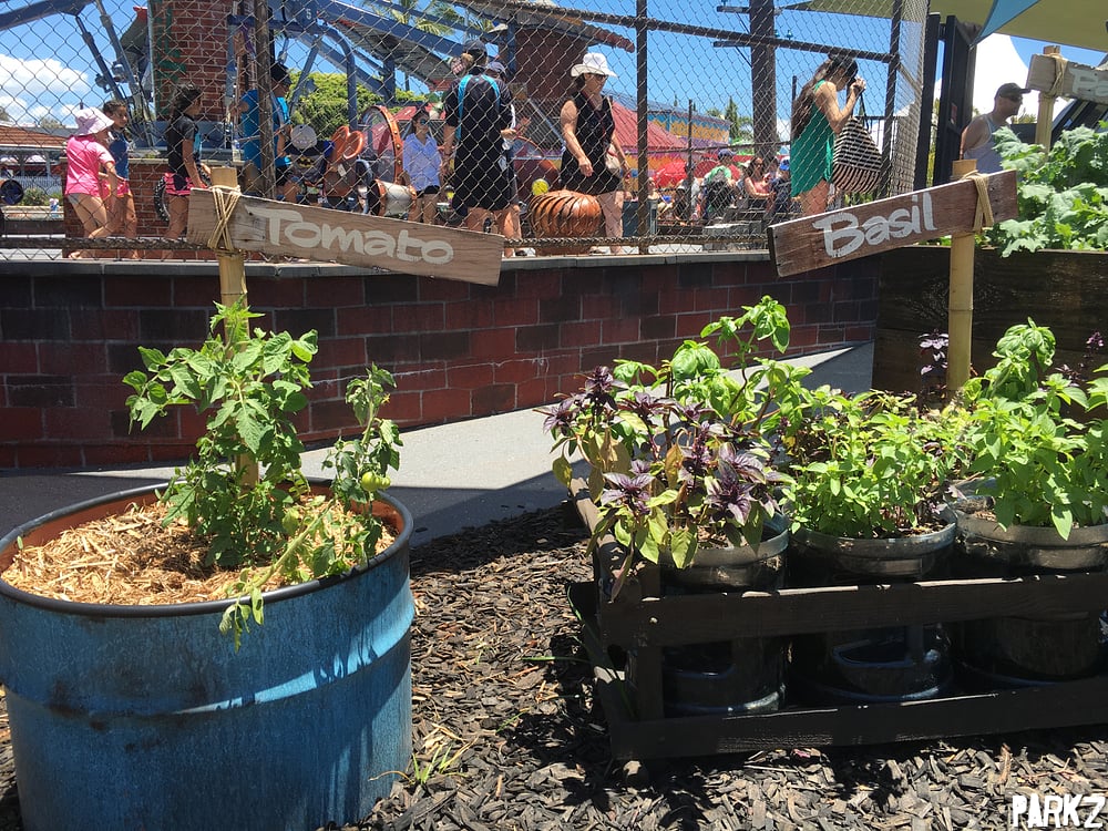 Herb and vegetable gardens suitable for making pizza sauce surround the ride.