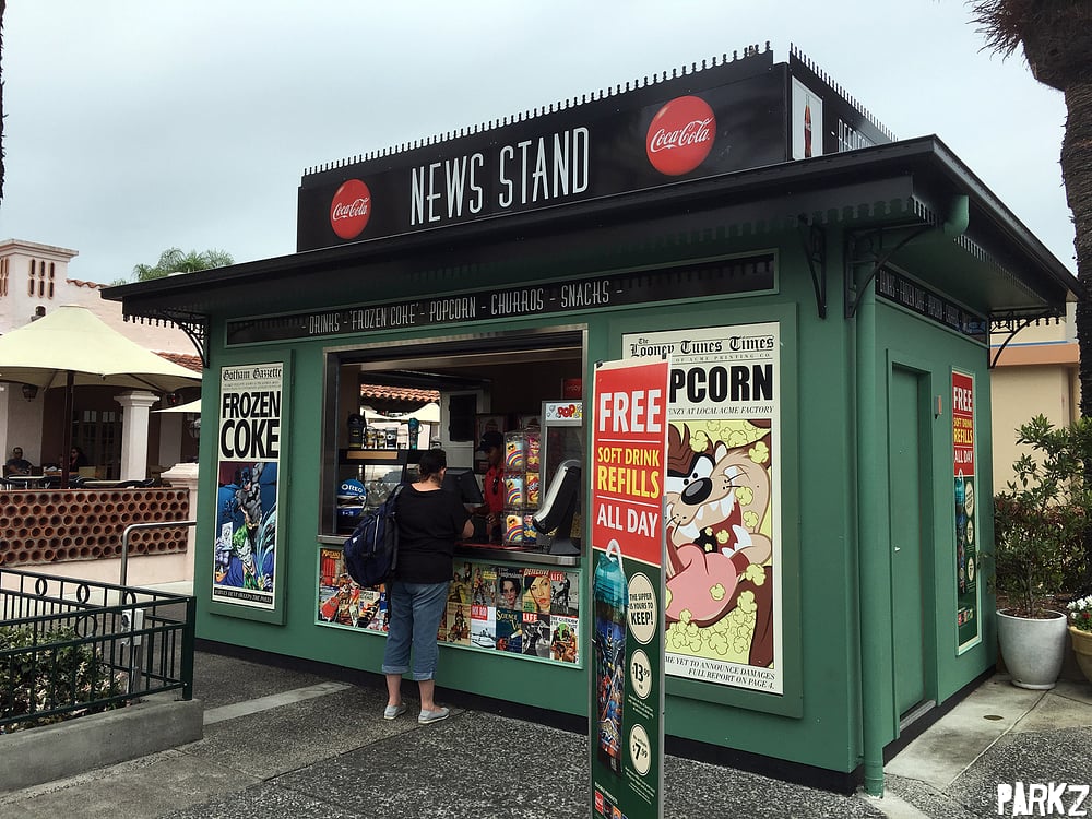 Newly renovated, the expanded News Stand serves largely as a drink refill station and snack shop. Movie World is really emphasizing their unlimited drinks program as of late.