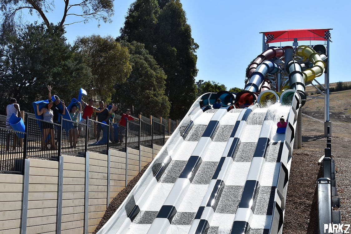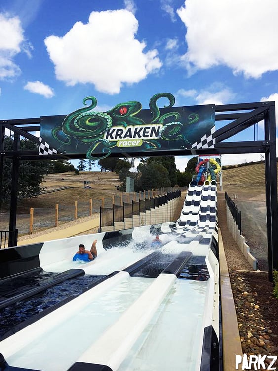 Image: Luke Fazio. The Kraken Racer water slide has opened to the public.