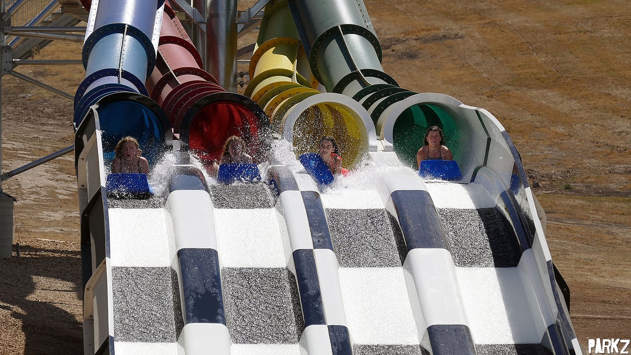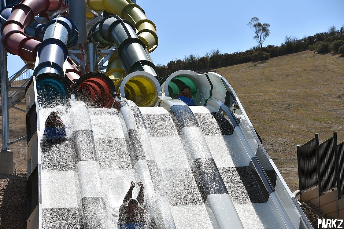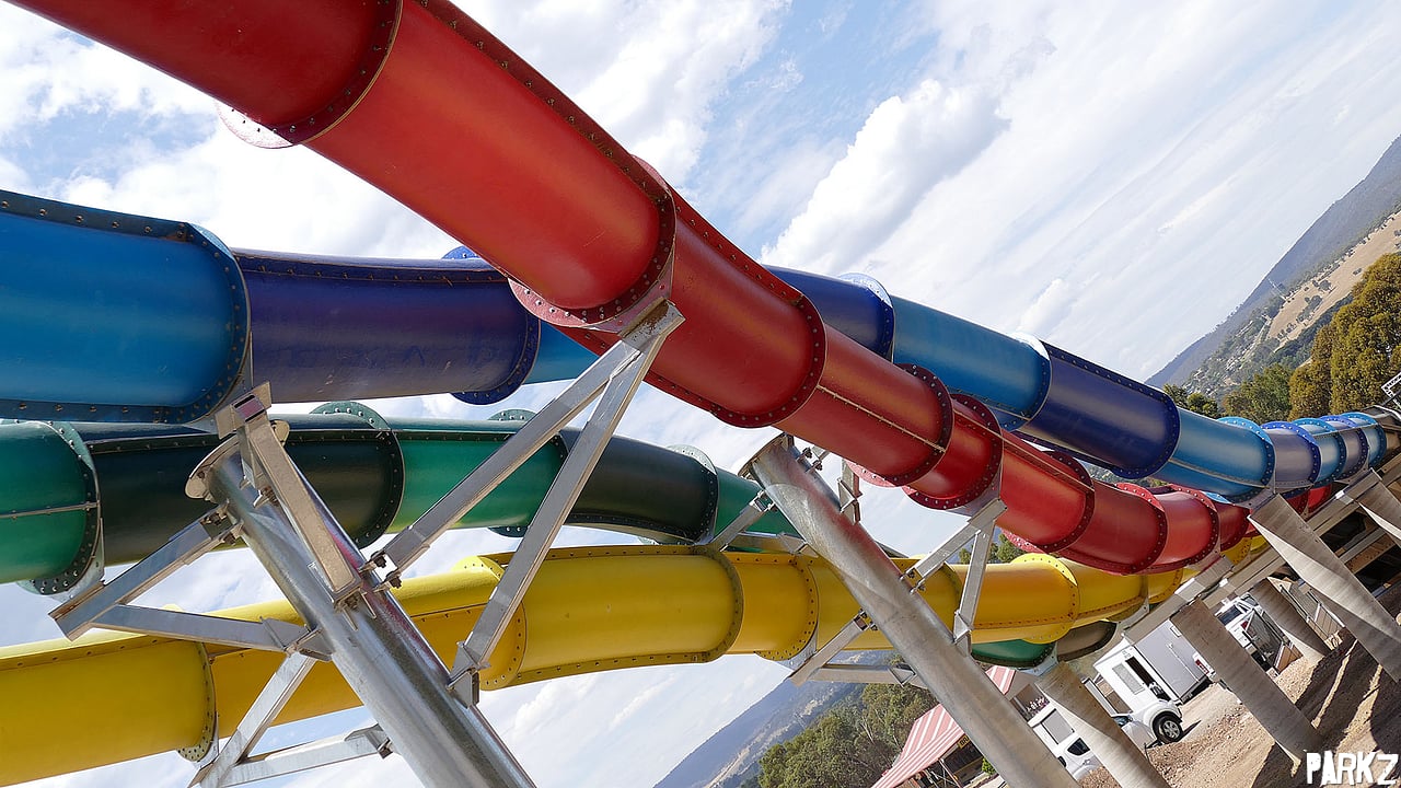 Riders have a choice of four different coloured slides. The green and blue slides provide the most airtime. But the red and yellow provide a more out-of-control experience.