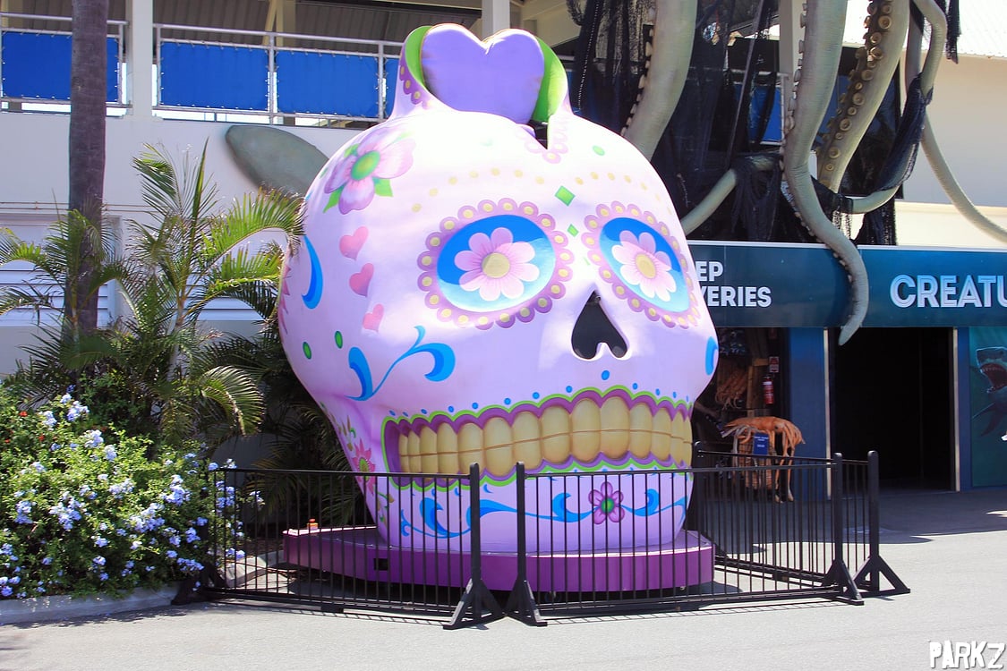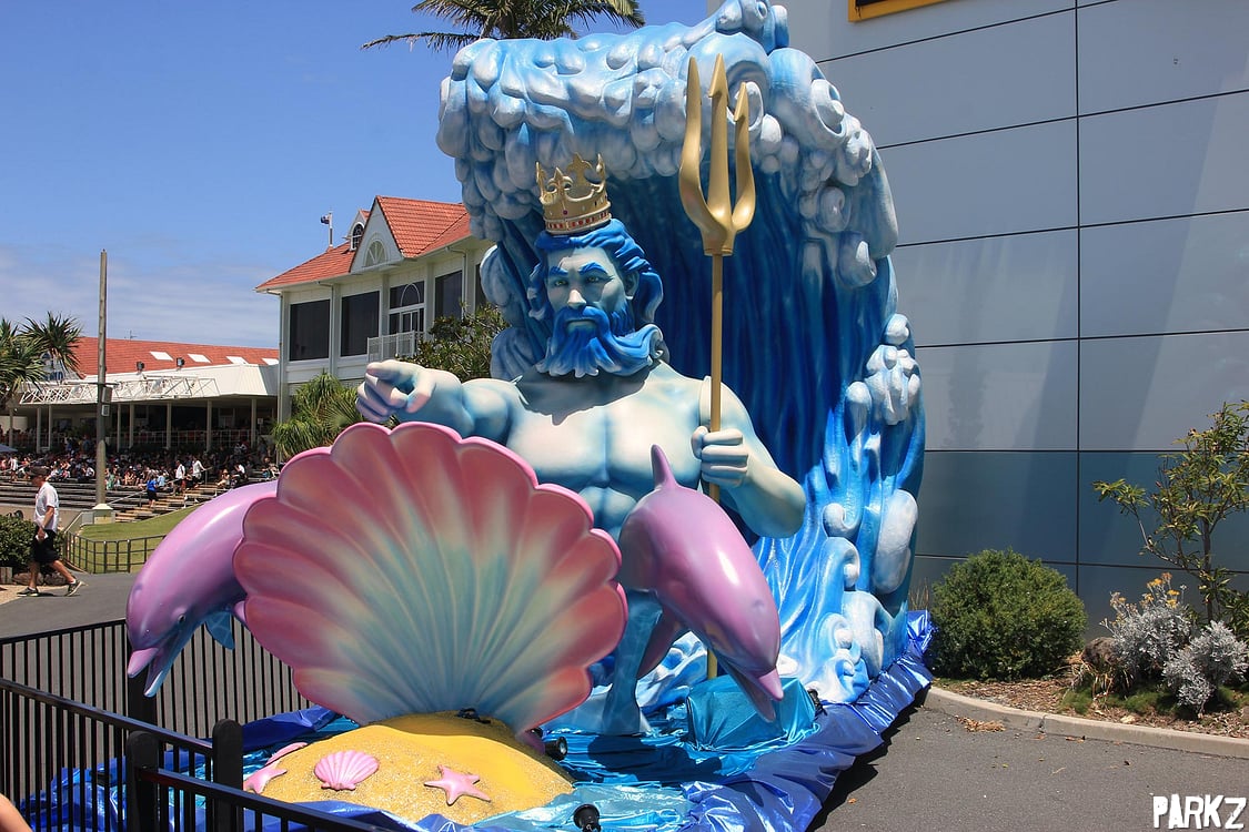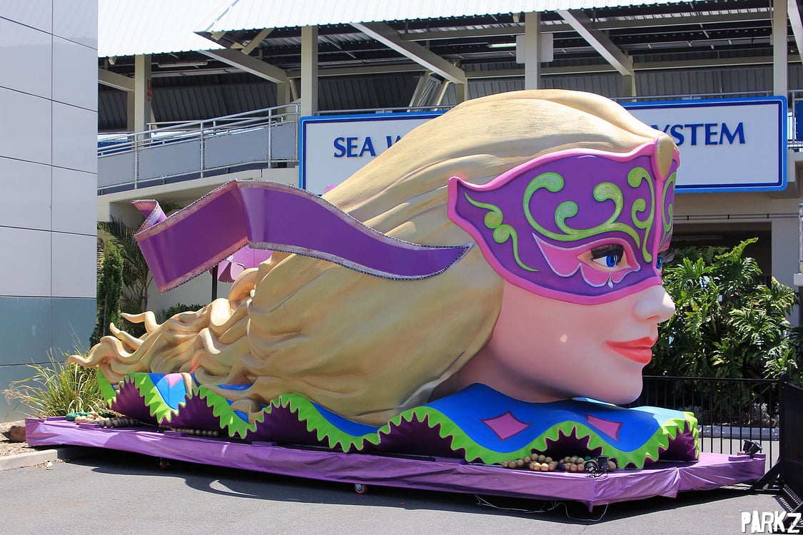 The event sees Movie World's parade floats disassembled and scattered around Sea World.