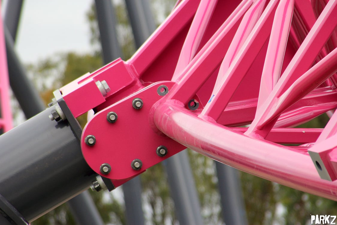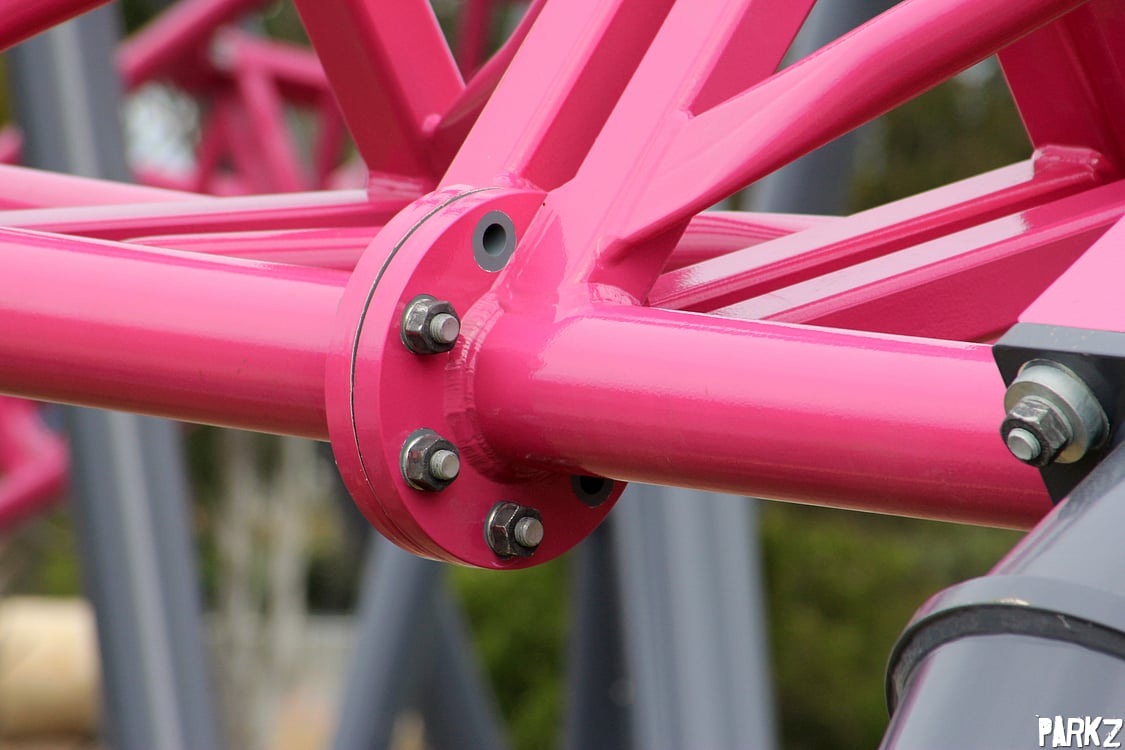 Pay no attention to the spaghetti bowl of roller coaster in the background, this is what you're here for: closeups of steel columns.