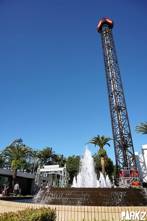 The skyline at the front of Movie World with Green Lantern and Batwing Spaceshot.