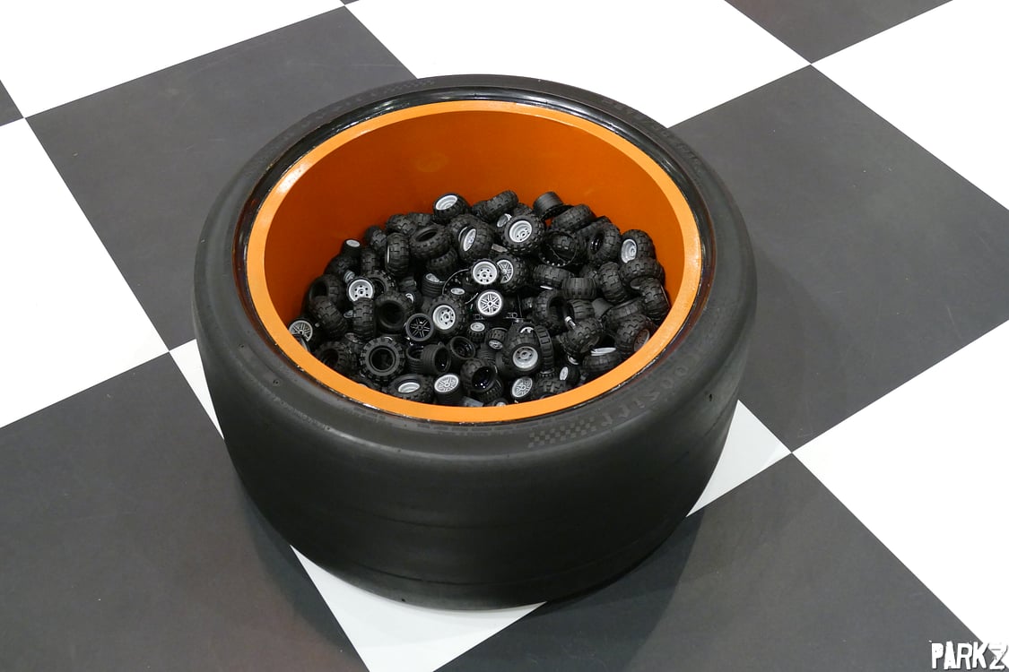 Tire-ception! Littered around the race area are plenty of play pits and tables where kids can play with loose Lego bricks.