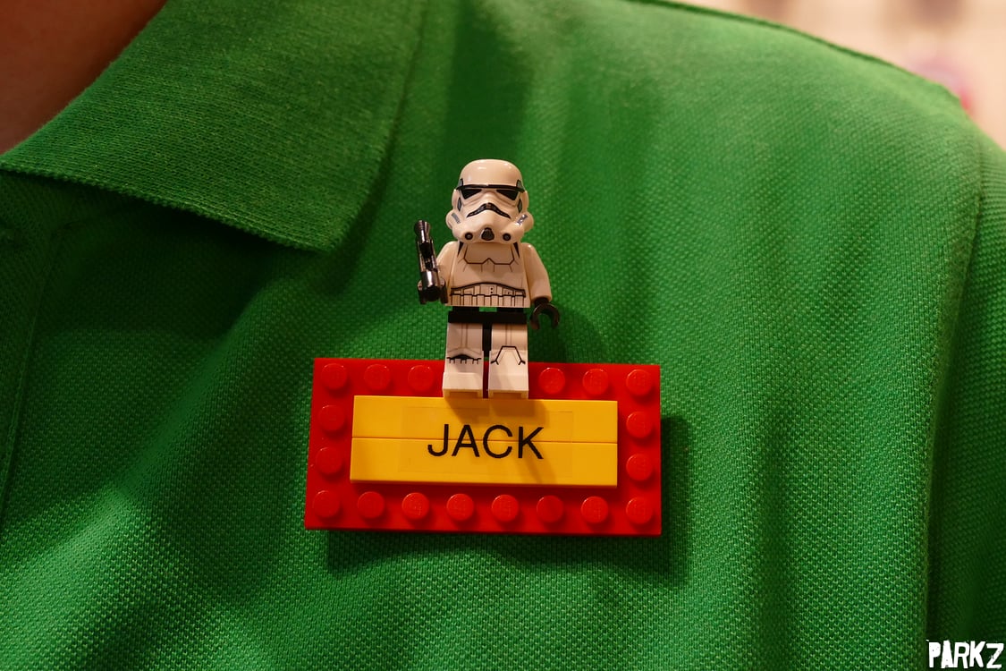 Each staff member wears a name badge that they can customise. Jack's name badge simply features a stormtrooper.