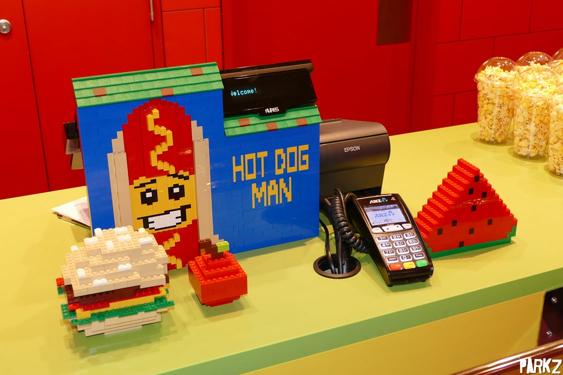 Even the cash register is decorated with lego bricks and food lego sculptures.