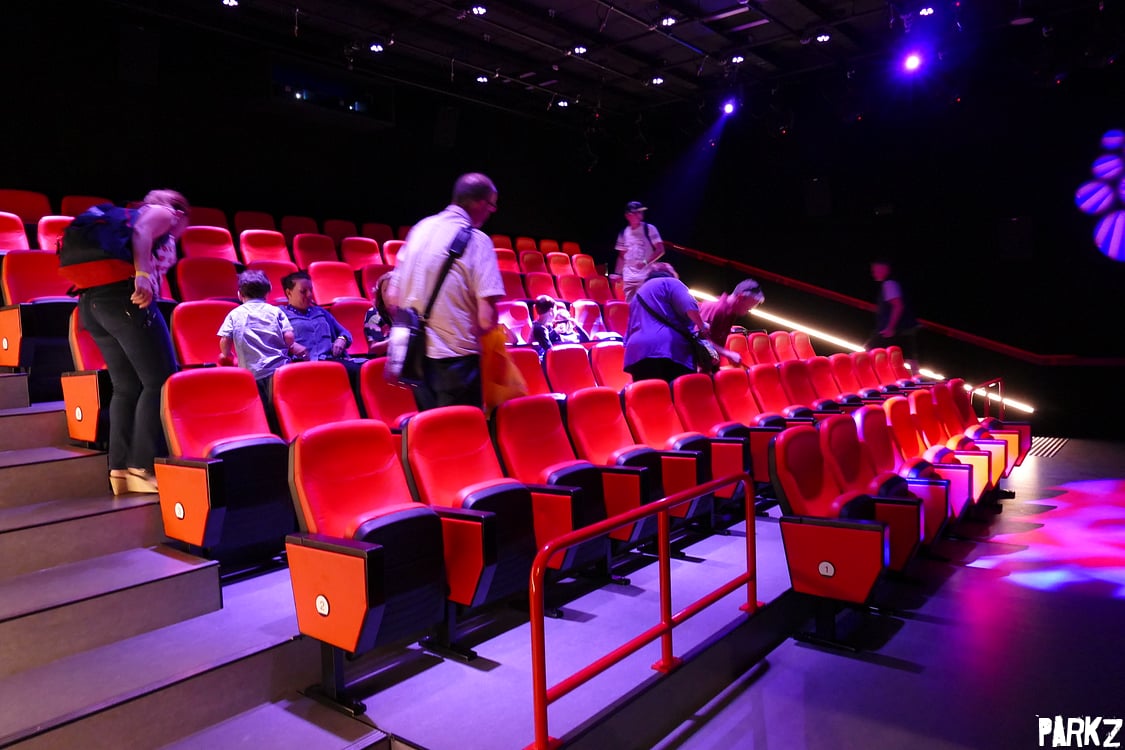 The cinema is a classic 4D setup. A 3D movie is shown and atmospheric effects such as wind, lighting, fog and water are triggered during specific points to enhance the movie watching experience.