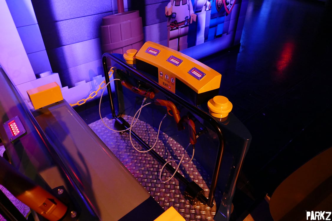 Once the vehicle leaves the station it meanders between physical sets and screens, where you shoot targets to gain points. The ride is short, but the trackless vehicles allow for complex movements in, out and around the small sets.