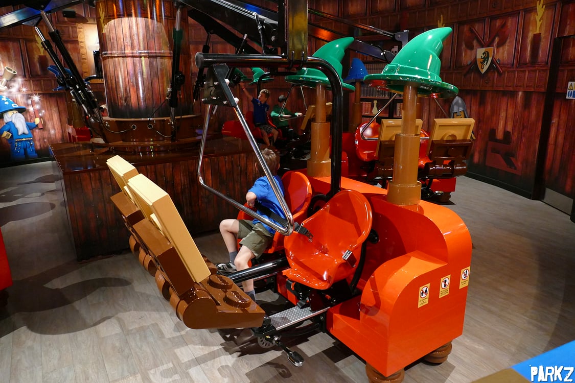 Merlin's Apprentice is a Zamperla Magic Bikes flat ride (Similar to Donatello's Flyers at Sea World). The ride itself is a fun, but tame experience that caters to all ages.