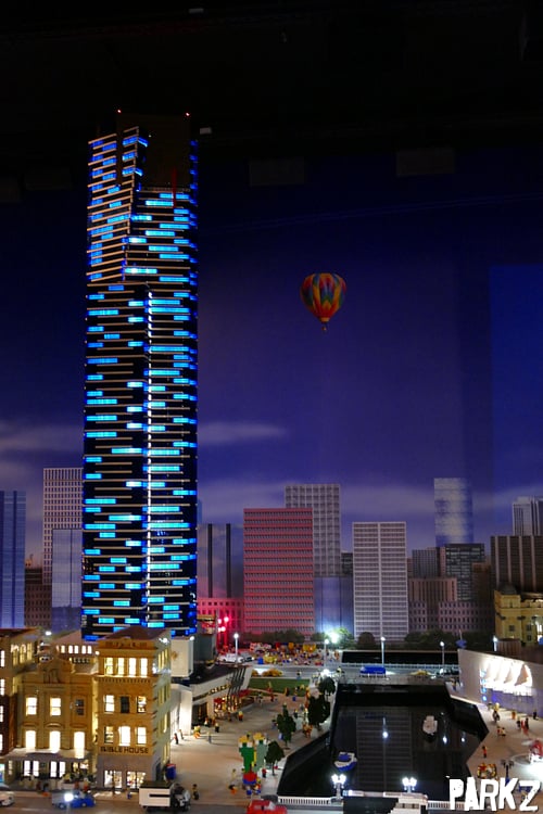The Eureka Tower during the night. Stunningly lit up during the night time phase at Miniland.