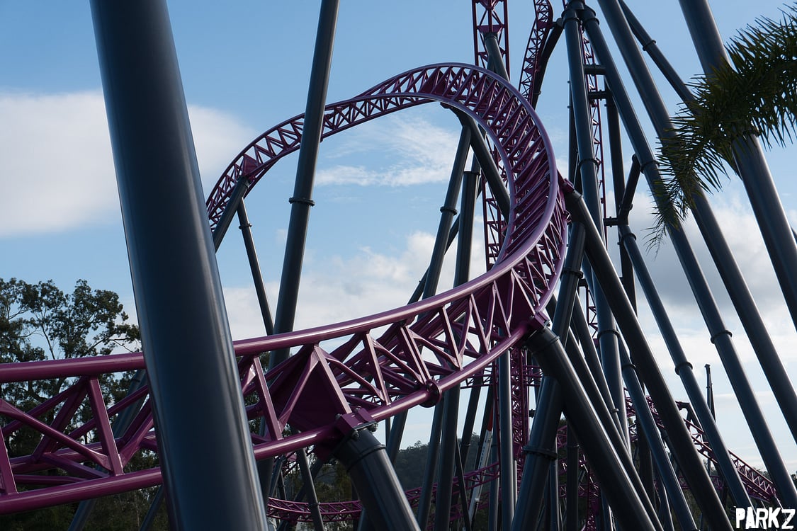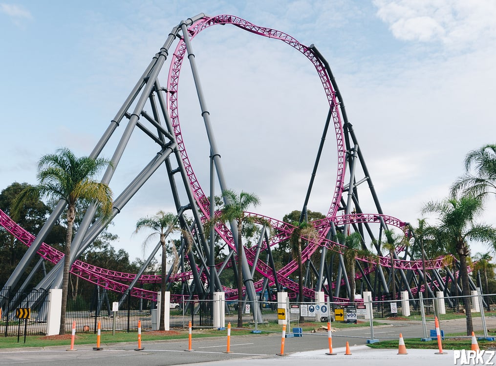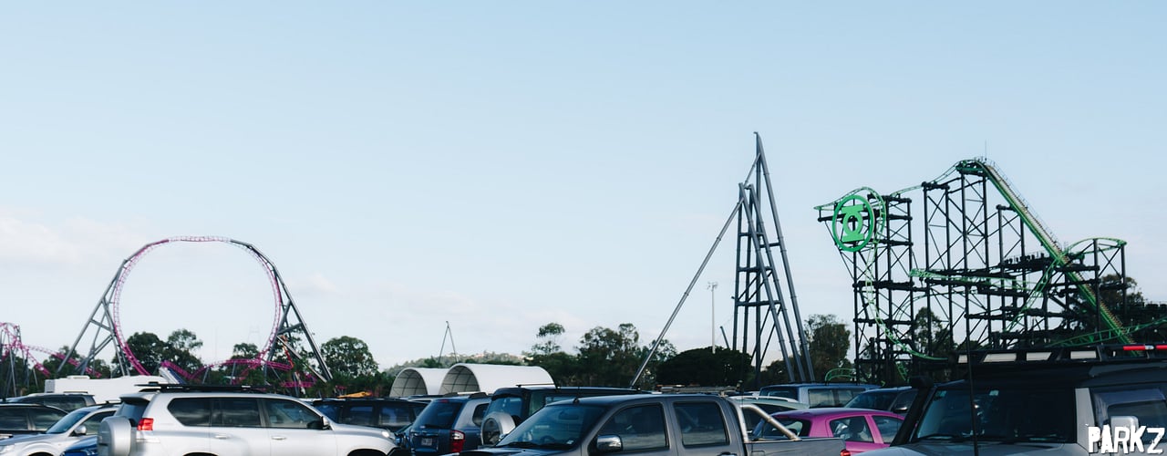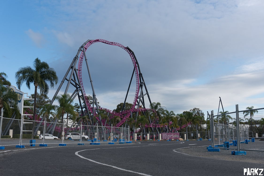 Image: Parkz. The non-inverting loop towers over the Movie World car park.
