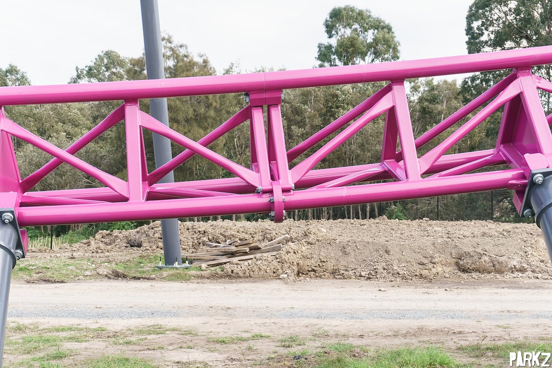 The ongoing construction of DC Rivals HyperCoaster is fast showing just how much of an impact the gargantuan roller coaster will have on the skyline at movie World as it towers over several of Movie World's tallest rides.