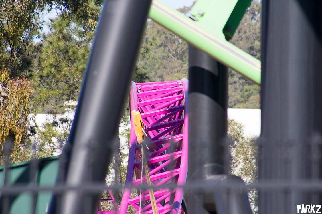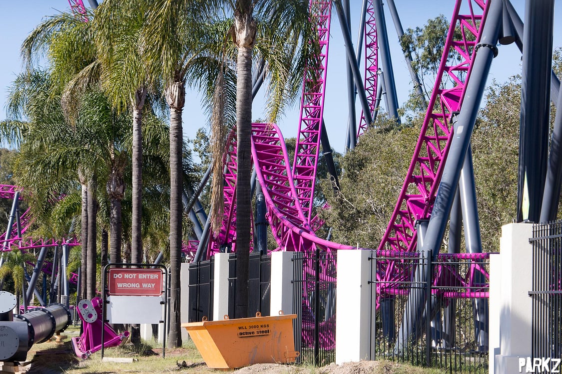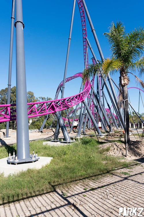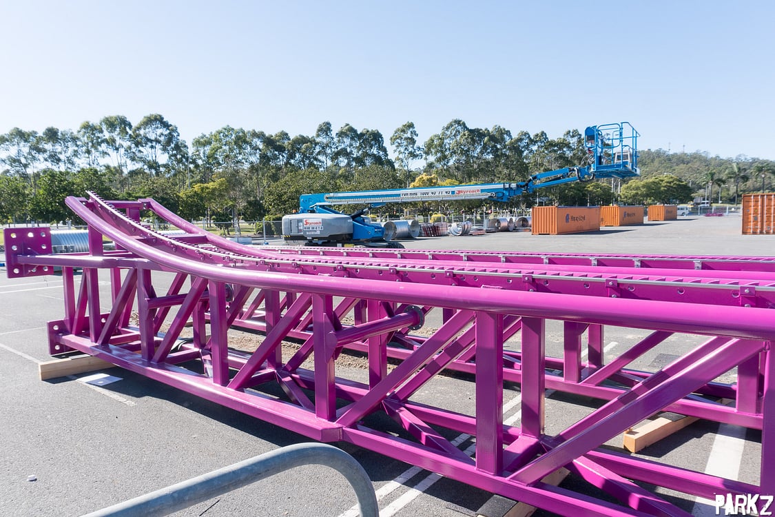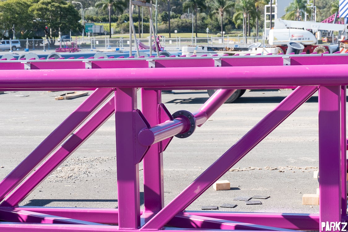 The tiny hills are dwarfed by the giant camel back above, whose supports the hills snake through. It's great to see these elements, as Australia has been sorely lacking a true airtime machine.