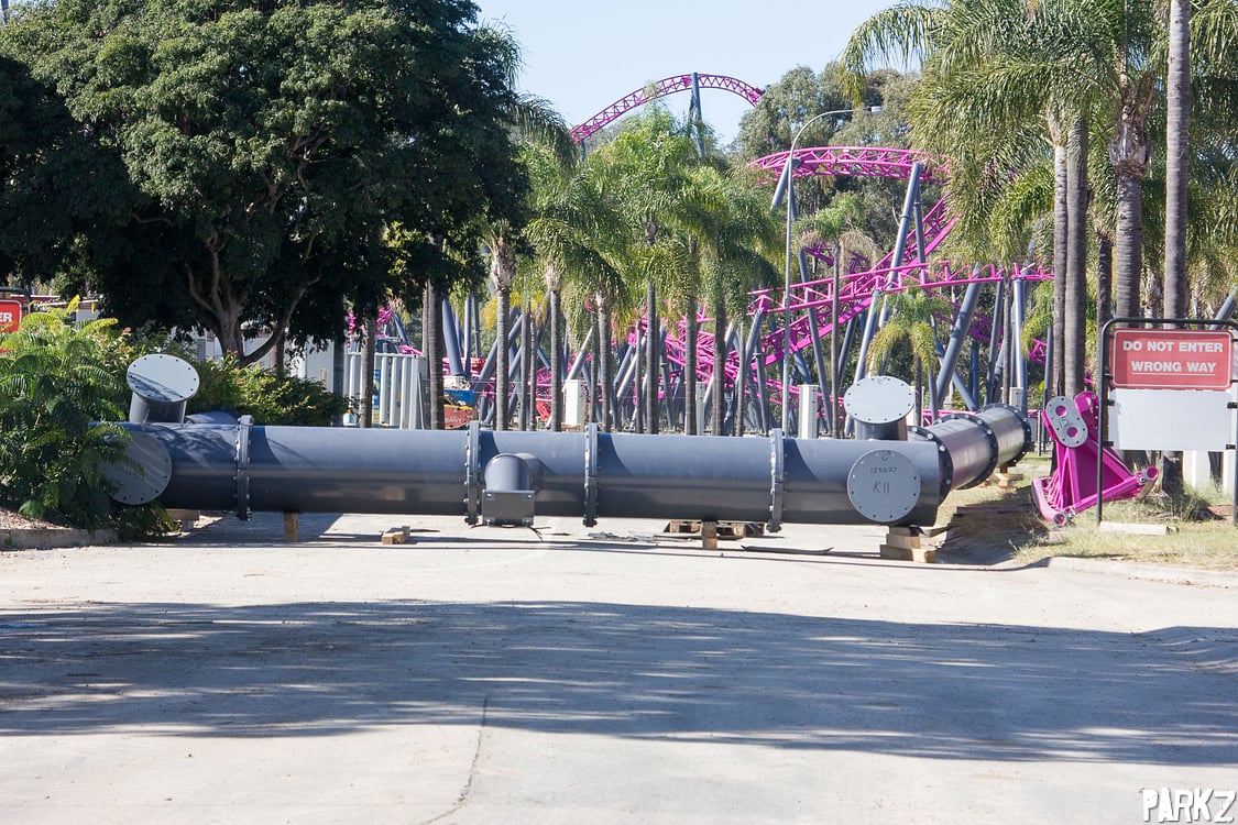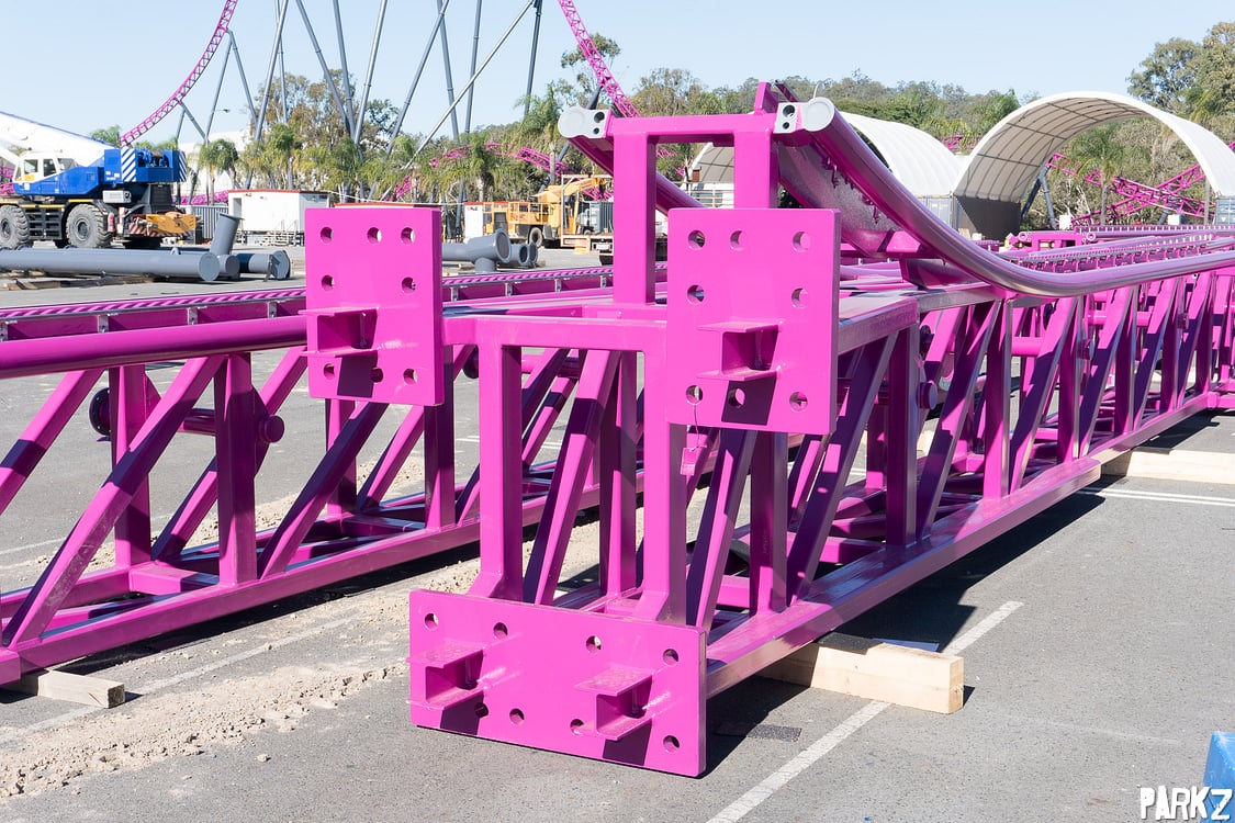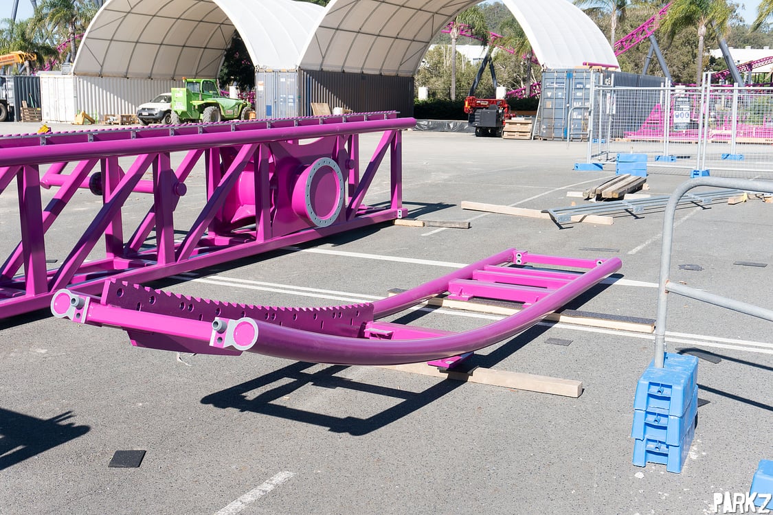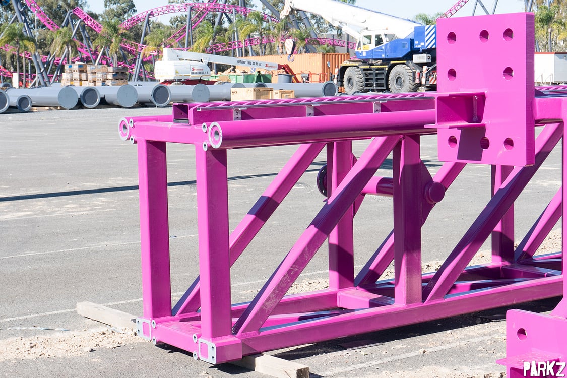 The tiny hills are dwarfed by the giant camel back above, whose supports the hills snake through. It's great to see these elements, as Australia has been sorely lacking a true airtime machine.