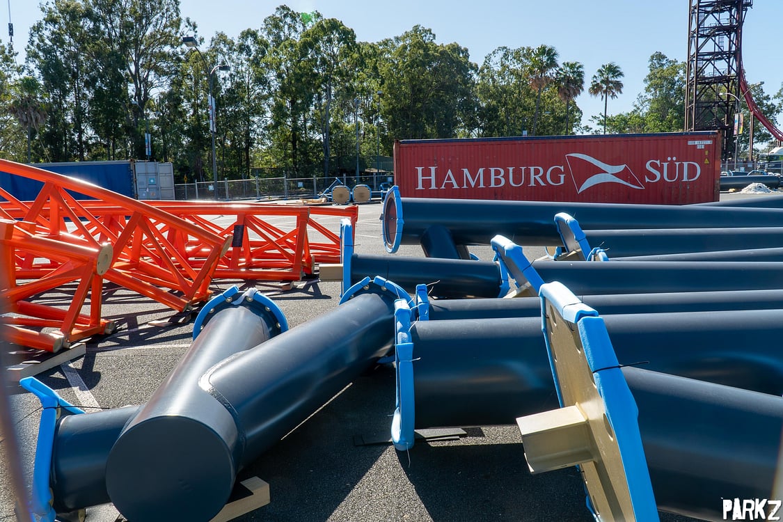 It's still not clear when the roller coaster will be built given Ardent Leisure's ongoing financial uncertainty and the global situation with COVID-19, but at this point Dreamworld have to unload and store parts for an attraction that's already making the long shipping journey from Germany piece-by-piece.